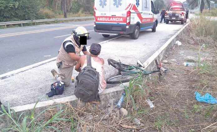 Tapachula, Chiapas; 5 de enero.- A la altura del kilómetro 12.5 del tramo carretero Tapachula – Puerto Chiapas, un ciclista fue arrollado por un conductor que se dio a la fuga.