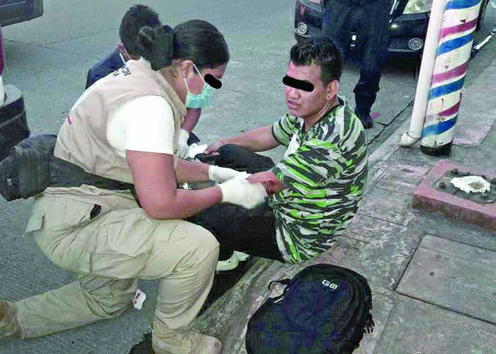 Paramédicos de Protección Civil Municipal de Tapachula, brindaron la atención a Rafael “N” de 26 años de edad, salvadoreño con domicilio en la colonia Las Américas y añadió que trabaja en la zona diamante, en la avenida central oriente y calle Tuxtepec. Fue llevado al Hospital General de Tapachula. EL ORBE / Roberto Corado Mosqueda