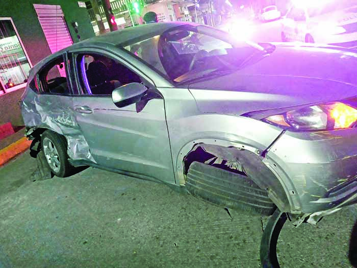 Los uniformados tuvieron a la vista camioneta con serias averías, es una Honda HR-V con placas de circulación del estado, estaba de norte a sur, atravesada a media calle.