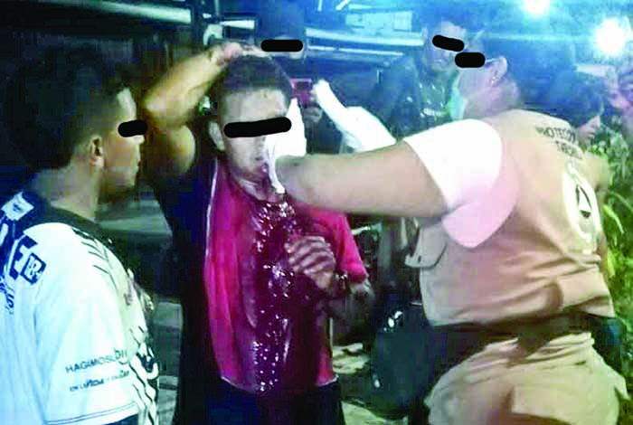 Paramédicos de Protección Civil Municipal, brindaron los primeros auxilios a Juan Gabriel “N” de 32 años de edad, que fue trasladado al Hospital General de Tapachula. Cabe hacer mención que estas personas pelearon porque un haitiano, estaba molestando a la esposa de otro hombre y al reclamarle se hicieron de palabras y más tarde salieron a relucir los machetes. EL ORBE / Roberto Corado Mosqueda
