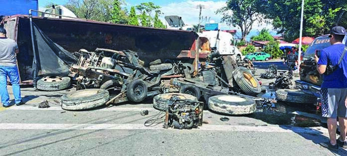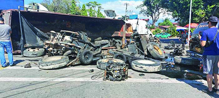 Los motores quedaron esparcidos sobre la carretera y solo hubo daños materiales. El perito de Tránsito será el encargado de deslindar responsabilidades. EL ORBE / Roberto Corado Mosqueda