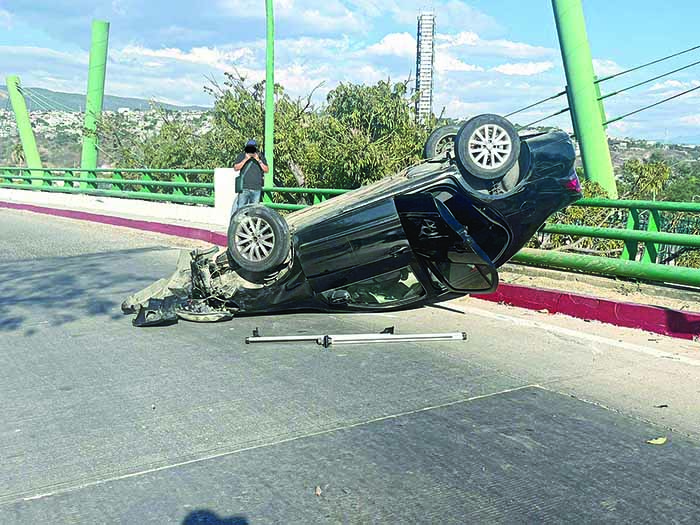 Según el reporte policiaco a las 15:30 horas de este miércoles, el vehículo Volkswagen Golf con matrícula YJZ-56-35, era conducido a exceso de velocidad lo que provocó que terminara colisionando con el muro metálico y del fuerte impacto se volcó de costado. El conductor de nombre Luis Alberto de 28 años de edad resultó ileso pero fue valorado por paramédicos del ERUM sin necesidad de ser traslado a un hospital. La unidad fue remolcada a un corralón de la capital chiapaneca. EL ORBE / Rafael Jiménez / Corresponsal