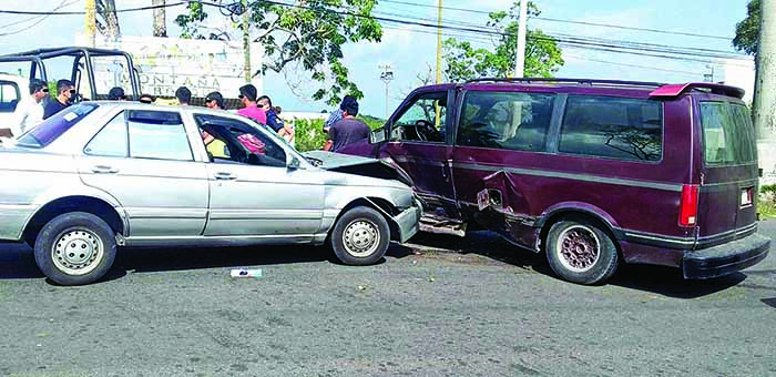 Tapachula, Chiapas; 14 de enero.- Un fuerte accidente se registró en el cruce de la 17ª oriente y calle lateral que sale de la Gasolinera Navy, cuando el conductor de una camioneta Van, no tomó las debidas precauciones para incorporarse a la circulación y ocasionó el choque.