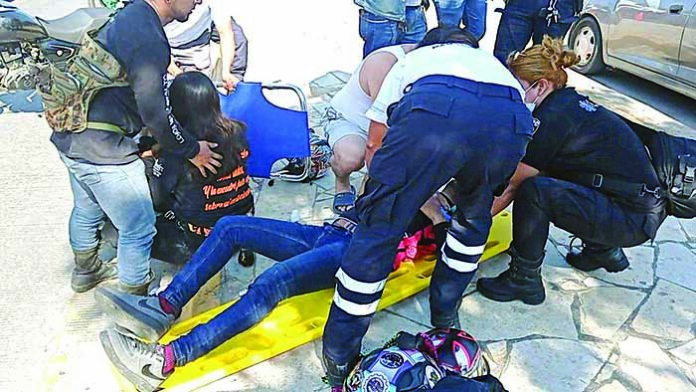 El motociclista acabó con heridas en diferentes partes del cuerpo y con una probable fractura en rodilla. Se desconoce la identidad del lesionado, pero se presume que tiene alrededor de 25 años de edad. Debido a la probable fractura tuvo que ser trasladado por los socorristas a un hospital particular. La motocicleta quedó a resguardo de los familiares que llegaron de inmediato al sitio. EL ORBE / Rafael Jiménez / Corresponsal