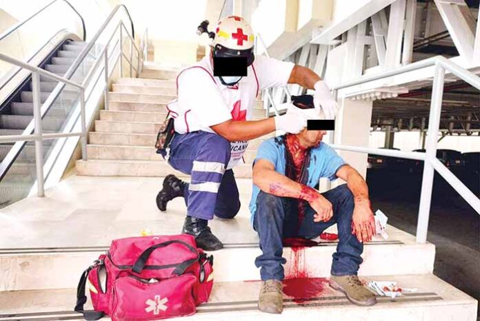 La señora Sandra Marili “N” de 42 años de edad, también salvadoreña dio a conocer que su esposo se encontraba en estado de ebriedad y cayó al perder el equilibrio, se abrió la cabeza en la parte de atrás. Debido a sus heridas fue llevado al Hospital General de Tapachula. EL ORBE / Roberto Corado Mosqueda