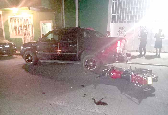 Tránsito del Estado, dio a conocer que tuvo a la vista una motocicleta y un vehículo estacionado. La primera es Honda y el oficial la tomó como abandonada. Se dio a conocer que el joven circulaba a exceso de velocidad y se impactó de frente contra la parte trasera de un vehículo estacionado. La unidad dañada es Chevrolet Cadillac y es propiedad de Carolina “N”.