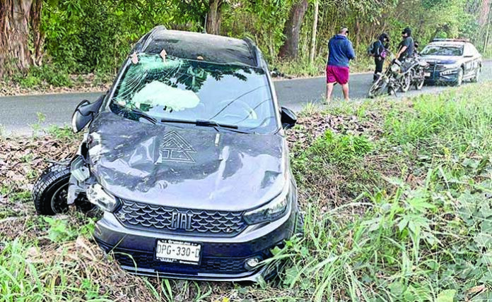 El perito de Tránsito del Estado, tuvo a la vista un vehículo seriamente dañado, al impactarse contra un poste de alumbrado público. Unidad Fiat con placas de circulación del Estado de Chiapas. El perito se hizo cargo de elaborar la documentación correspondiente para turnar este accidente ante el Ministerio Público del Fuero Común.