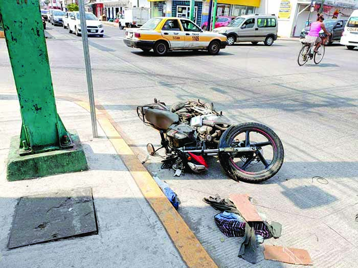 Tapachula, Chiapas; 22 de febrero.- Una persona en nombre Henry “N” resultó con lesiones en la mano al ser impactado por un vehículo, cuando transitaba en su motocicleta sobre la 18ª calle oriente y 13ª avenida sur.