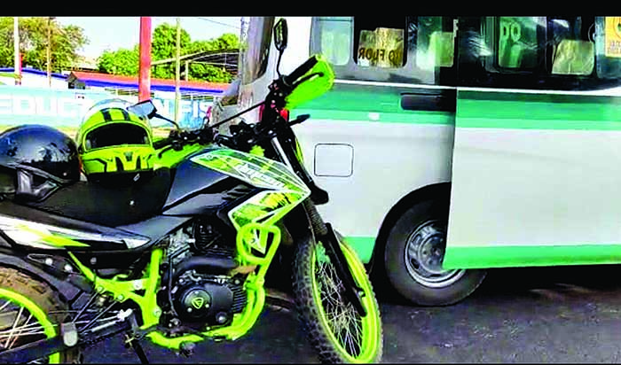 Tapachula, Chiapas; 1 de marzo.- La falta de precaución del conductor de una combi de pasaje de la ruta Río Florido – Tapachula, impactó al conductor de una motocicleta que resultó ileso.
