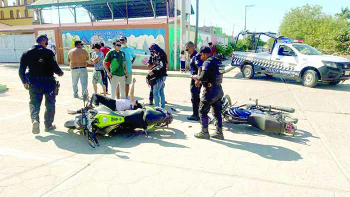 Ambos conductores quedaron tirados, pero la mujer de 30 años presentaba una fractura en la tibia derecha, mientras que el hombre sangraba de la boca profusamente. Inmediatamente el reporte fue emitido al 911 y el Cuerpo de Bomberos y Protección Civil llegaron al lugar, les brindaron atención médica y los trasladaron al Hospital Básico Comunitario. La Policía Municipal también se presentó.