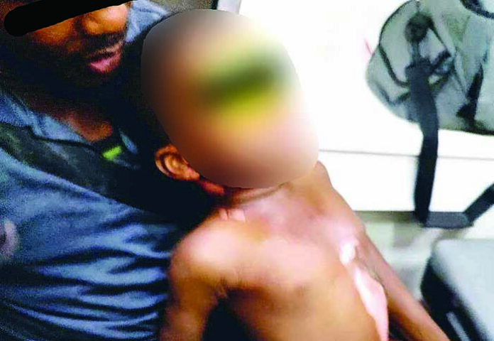 Paramédicos acudieron al sitio y atendieron al pequeño de nombre Keurvens “N” de 3 años de edad, de origen haitiano. Estaba en los brazos de su padre. Le brindaron atención médica ya que presenta quemaduras de 2° grado. Fue llevado al Hospital General de Tapachula. EL ORBE / Roberto Corado Mosqueda