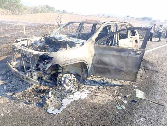 Jiquipilas, Chiapas; 13 de abril.- Una posible falla en el sistema eléctrico, pudo haber sido la causa para que sobre la carretera de cuota Coita-Arriaga, un vehículo se incendiara. Pasadas las 14:00 horas el 911 recibió el reporte donde informaban que en el kilómetro 38 un Jeep Grand Cherokee, se estaba quemando y era necesario que personal de emergencia acudiera al lugar.