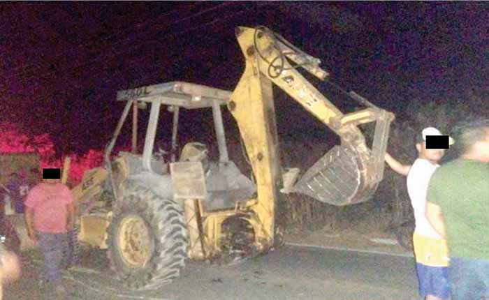 Villaflores, Chiapas; 14 de abril.- El conductor de un automóvil se estrelló contra una retroexcavadora que era remolcada por un camión de volteo, pues al parecer las unidades no llevaban luces preventivas. El conductor de un Pointer de color gris se impactó por alcance contra una máquina, dejando cuantiosos daños en su vehículo.