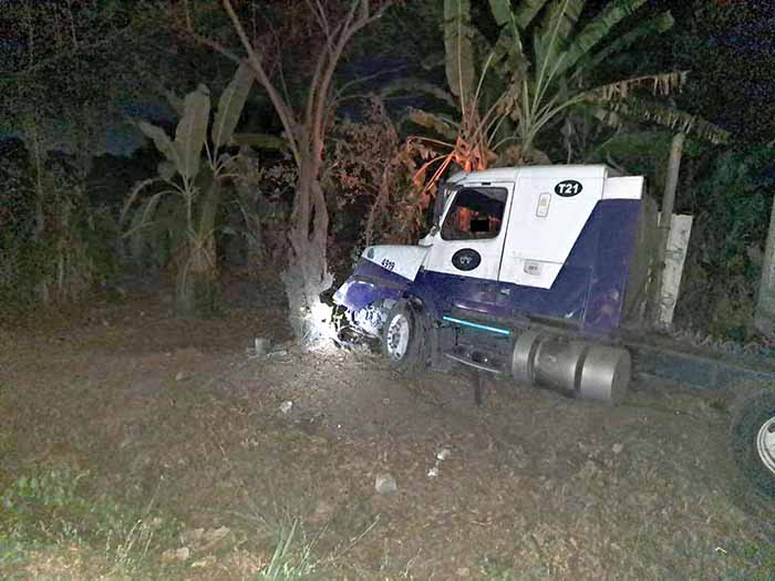 El chofer dio a conocer a las autoridades, que por un descuido perdió el control del volante de su camión y se salió de la vía. Resultó con daños materiales. El perito de Tránsito del Estado será el encargado de deslindar las responsabilidades. EL ORBE / Roberto Corado Mosqueda