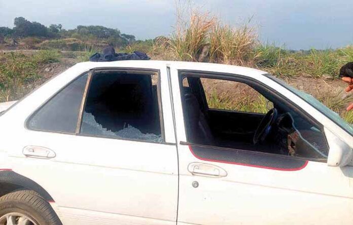 El reporte de 911 Emergencias, mencionaba un vehículo abandonado, se logró saber que los elementos policiacos, verificaron y constataron que los daños en los cristales del vehículo no eran disparos de arma de fuego, sino golpes con piedras. Los uniformados se retiraron del lugar. EL ORBE / Roberto Corado Mosqueda