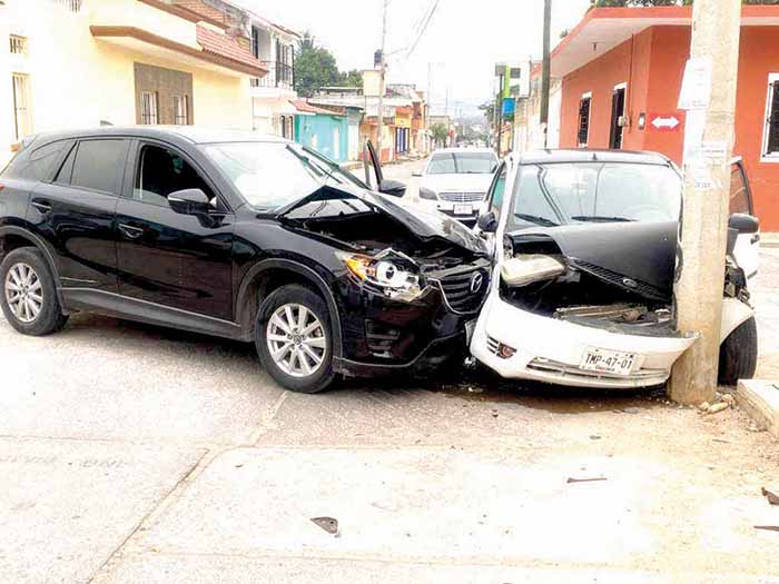 Cintalapa, Chiapas; 25 de abril-. Dos personas lesionadas, entre ellas un menor de edad y cuantiosos daños materiales, fue el resultado de un accidente de tránsito ocurrido la mañana de este martes a la altura de la Sexta Sur y Séptima Oriente en el barrio de Santa Cecilia de Cintalapa.
