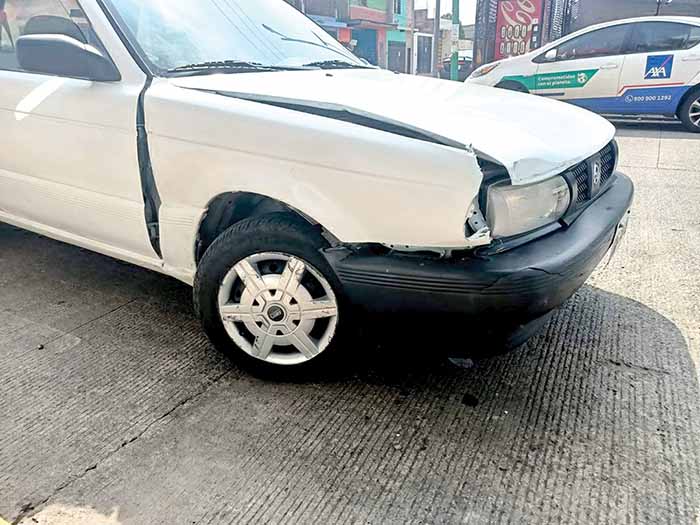 Tapachula, Chiapas; 8 de junio.- Daños materiales y afortunadamente ninguna persona lesionada, fue el resultado de un accidente automovilístico que se registró en la 10ª avenida norte y 25ª poniente. Este accidente se registró a las 8:20 de la mañana, cuando el conductor de un Nissan Tsuru con placas de circulación del estado de Nuevo León de color blanco, conducido por María Guadalupe “N”, quien transitaba de oriente a poniente y al llegar al cruce con la 10ª norte, colisionó contra una camioneta Honda CR-V, conducida por María Eugenia “N”.