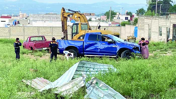 El percance sucedió sobre la 4.ª avenida Poniente a la altura de la 25.ª calle Sur, en donde por razones desconocidas el chofer de una camioneta Dodge Ram de color azul perdió el control del volante por lo que chocó contra unas láminas y volcó en un lote baldío.