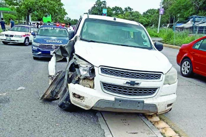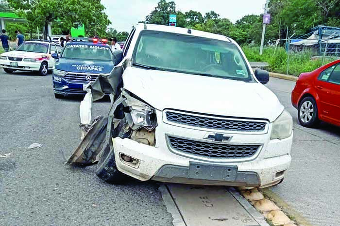 Tapachula, Chiapas; 12 de junio.- Cuantiosos daños materiales dejó un accidente automovilístico que se registró a la altura de la 7ª sur par vial, frente a Plaza Galerías.