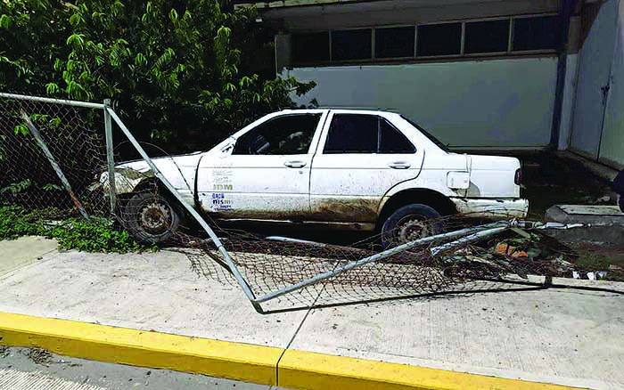Tapachula, Chiapas; 18 de junio.- Vecinos de las colonias Octavio Paz y Salinas de Gortari, reportaron que sobre la 11ª sur prolongación, en la escuela ICATECH, se encontraba un vehículo de color blanco impactado contra la malla ciclón.