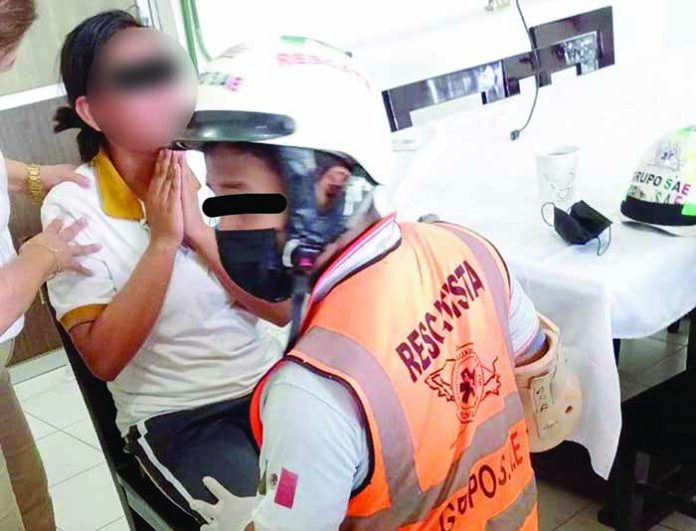 Rescatistas del Grupo SAE brindaron los primeros auxilios a Sharlin “N” de 16 años de edad, quien sufrió un desmayo estando en clases y convulsionó. Los directivos de la escuela fueron informados, minutos después, que otra menor de 15 años, de nombre Polet “N”, estaba teniendo los mismos síntomas.
