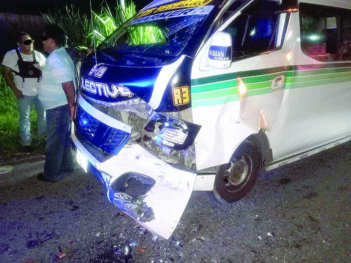 Al momento del impacto la camioneta circulaba de Sur a Norte, y por el exceso de velocidad perdió el control de su camioneta e invadió el carril contrario hasta chocar de frente contra una colectiva Nissan Urvan NV – 350, con placas de circulación del Servicio Público Local, marcada con el número económico 3-09, propiedad de Autotransportes Rosario Ixtal. S.A. de C.V.