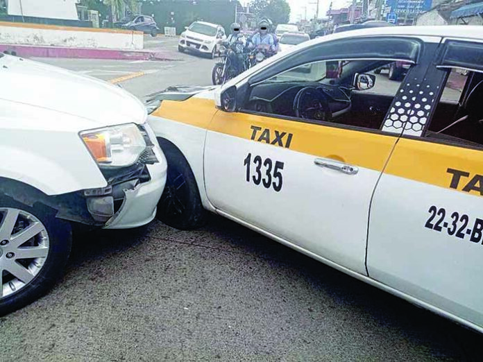 El vehículo afectado es un Nissan Versa habilitado como taxi local, marcado con el número económico 1335, conducido por Julio Iván «N».