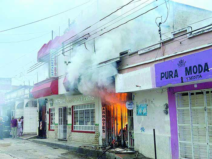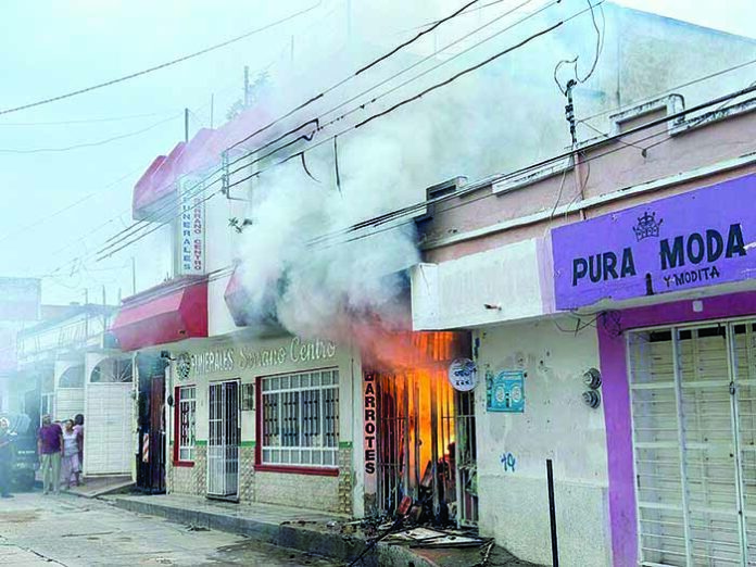 Cintalapa.-La madrugada de este martes tres locales comerciales se incendiaron. Minutos después de las 05:00 horas, la Policía Municipal atendió el reporte del 911 por un incendio sobre la avenida Central y 3.ª Poniente de la colonia Centro.