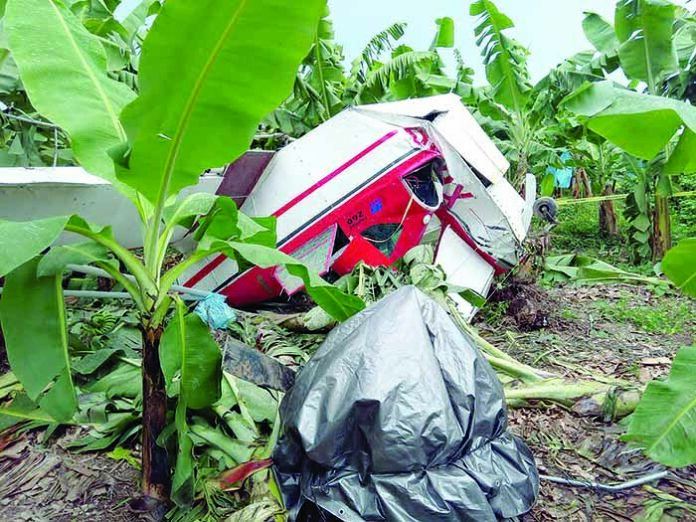 Cabe agregar que los elementos policiacos, en el lugar del aterrizaje se entrevistaron con Ángel “N” que es el propietario de la bananera y dio a conocer que cuando serían aproximadamente las 09:00 horas, se encontraban fumigando y notaron que la unidad había fallado en el aire. El piloto realizó un aterrizaje forzoso y cayó entre las plantas.
