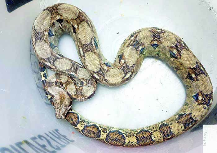 Informes de las autoridades precisaron que se trata de una serpiente del género y especie boa imperator (mazacuata) de aproximadamente 80 centímetros de largo, misma que no es una especie venenosa, por lo que no representa un riesgo a la población.