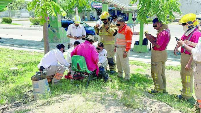 De inmediato los socorristas se las ingeniaron para poder liberarlo y evitar que el peso le lastimara más las extremidades. Una vez que estuvo fuera de peligro, Manuel «N», de 82 años de edad, fue trasladado al hospital. EL ORBE / Rafael Jiménez / Corresponsal