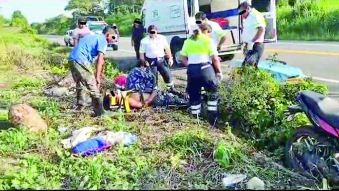 El hecho ocurrió este miércoles en la vía que va de Ocozocoautla a Las Choapas, en el kilómetro 55, hasta donde llegaron los servicios de emergencia para brindar los primeros auxilios a los tres pasajeros de la motocicleta accidentada.