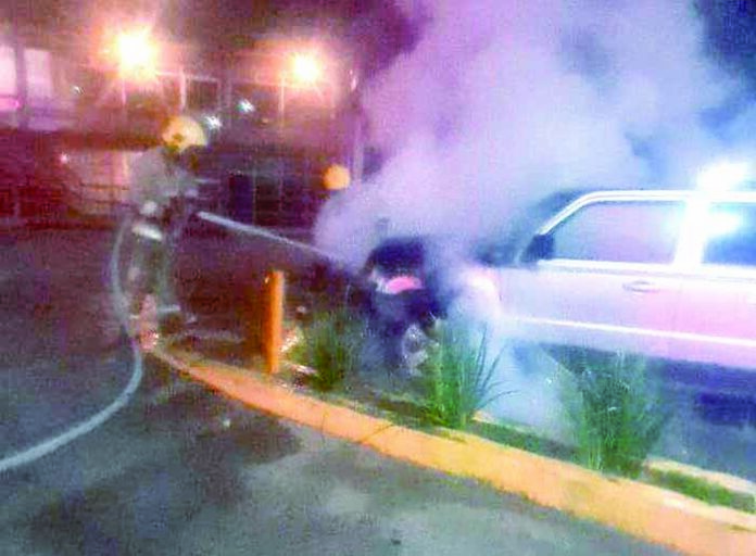 Elementos del Cuerpo de Bomberos acudieron alrededor de las 03:30 horas, luego del reporte al 911 y al llegar al lugar encontraron una unidad Jeep Patriot, que se encontraba con el motor en llamas. Rápidamente los “tragahumo” sofocaron las llamas y gracias a su oportuna intervención no se extendió al interior del vehículo, por lo que todo quedó en un susto. EL ORBE / Rafael Jiménez / Corresponsal