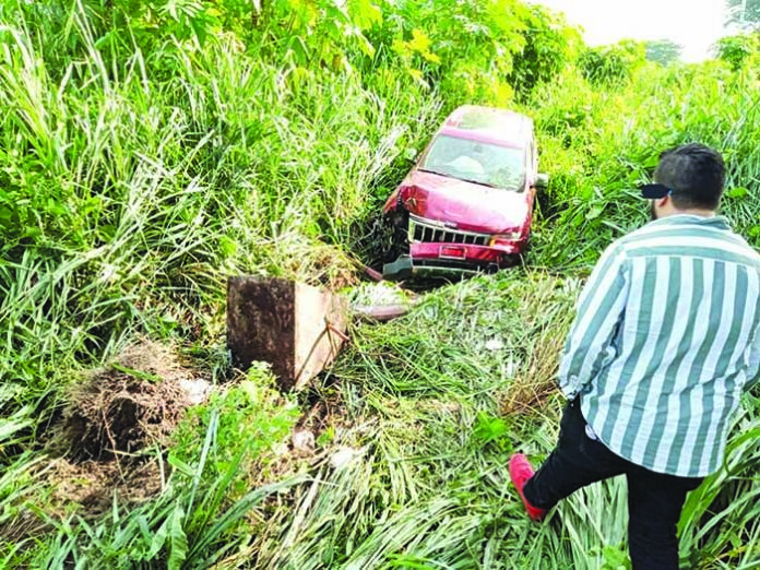 El conductor se encontraba en estado de ebriedad y se dio a la fuga en una unidad que llegó por él. El perito tuvo a la vista a una camioneta impactada contra un poste, causó daños y la camioneta quedó dentro del crecido monte. EL ORBE / Roberto Corado Mosqueda