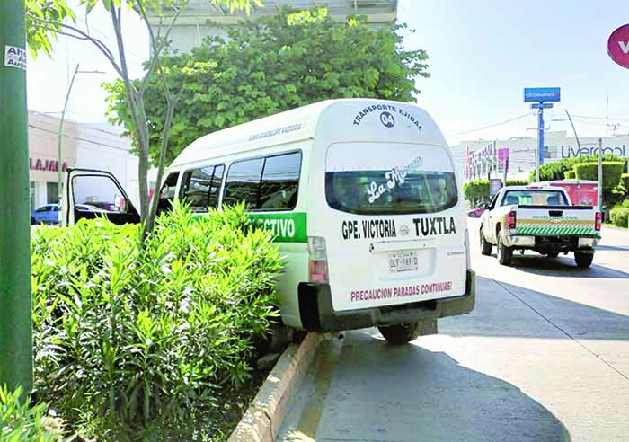 Tuxtla Gutiérrez, Chiapas; 17 de julio-. La mañana de este lunes un colectivo se impactó en la jardinera central del bulevar Belisario Domínguez a la altura del bulevar Ciro Farrera en la capital chiapaneca. Al parecer se quedó sin frenos.