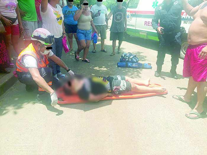 Tapachula, Chiapas; 21 de julio.- Habitantes del fraccionamiento Vida Mejor, pidieron la intervención de las diferentes corporaciones policiacas y de rescate, indicando que a la altura de la calle San Jorge y avenida Honduras, el chofer de una colectiva había atropellado a un menor que manejaba su bicicleta.