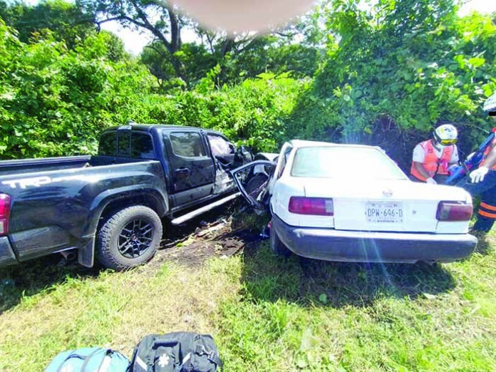 El presunto responsable conducía el Nissan Tsuru, circulaba de sur a norte sobre la carretera que conduce del ejido Álvaro Obregón y al intentar incorporarse a la carretera costera, se pasó la vía de preferencia y fue impactado.