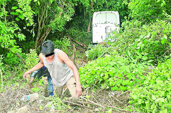 Tuxtla Gutiérrez, Chiapas; 23 de julio.- En el fondo del barranco terminó una pesada unidad luego de que, el chofer se estrellara contra el paredón del tramo carretero Tuxtla-Copoya justo entre La Virgencita y El Mirador en la capital del estado.