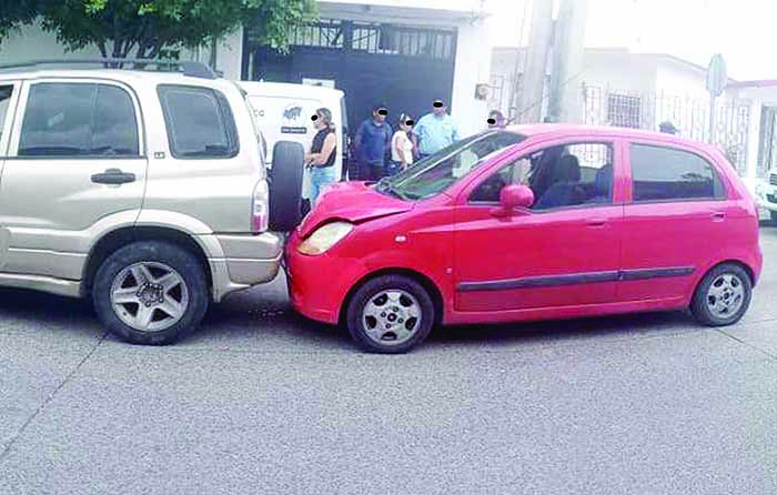 Impactó por alcance a un Chevrolet Pontiac de color rojo con placas de circulación del estado y conducido por Víctor Hugo “N”, que iba en el mismo sentido; este carro al salir proyectado, le pegó a un Chevrolet Tracker que manejaba Velia “N”.