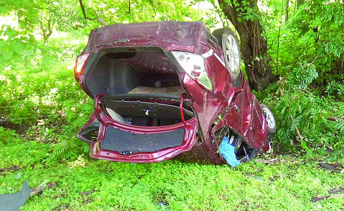 Diferentes corporaciones policiacas y de rescate al arribar tuvieron a la vista un vehículo volcado sobre su toldo y fuera de la carpeta asfáltica, el cual es Nissan Versa de color guinda, con placas de circulación del Estado de Chiapas, conducida por Leonel «N».