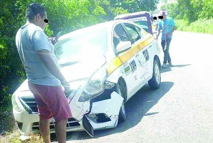 Villa Corzo.-Una unidad de transporte público tipo mototaxi y un taxi protagonizaron un aparatoso accidente que dejó múltiples daños materiales, en el camino que va de la comunidad Zapata hacia San Pedro Buenavista, en el municipio de Villa Corzo.