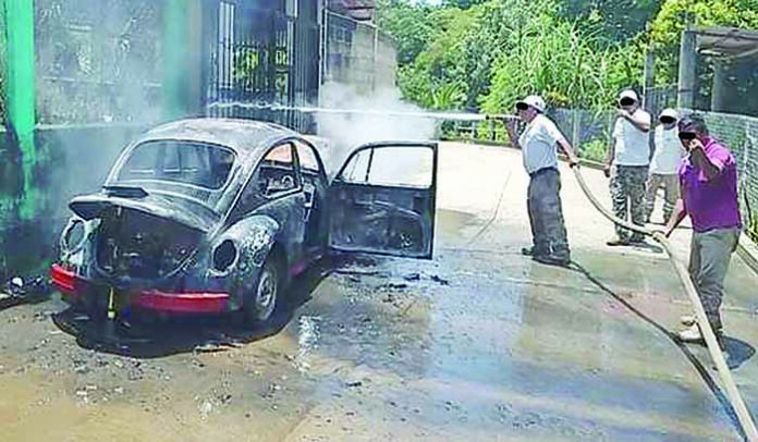 Al llegar encontraron incendiándose a un “Vocho” de color rojo, con placas de circulación de Chiapas, modelo 98.