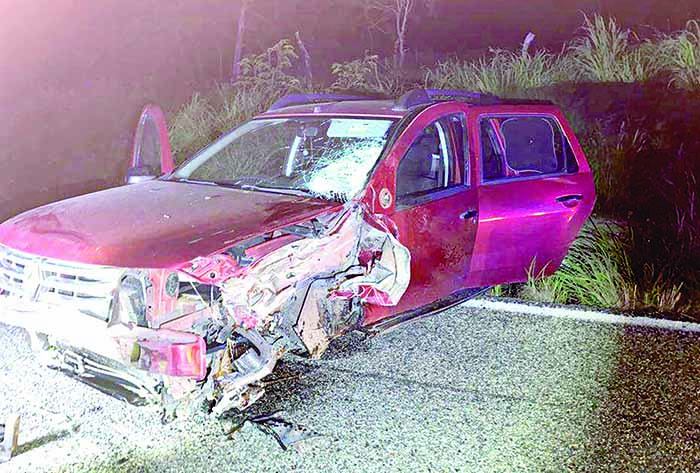 Jiquipilas..-Dos personas lesionadas de gravedad y cuantiosos daños materiales fue lo que dejó un aparatoso accidente automovilístico registrado la noche de este sábado sobre el tramo carretero Las Jotas-puente Las Flores sobre el municipio de Jiquipilas.
