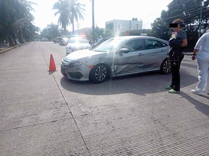 Los hechos ocurrieron cuando el distraído conductor de un vehículo Honda Civic de color gris, con placas de Chiapas, al salir de la tienda de Autoservicio intentó incorporarse a la Avenida Central Oriente, pero No tomó las debidas precauciones y realiza corte de circulación a una camioneta Dodge Journey de color guinda.