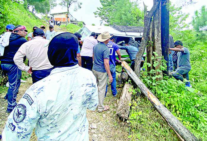 El chofer perdió el control del volante, por lo que se salió de la carretera y cayó a un barranco de aproximadamente 15 metros de profundidad.