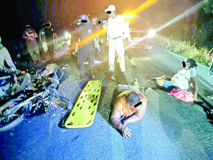 Mazatán, Chiapas; 13 de Agosto.- Tres personas resultaron seriamente lesionadas al impactarse dos motocicletas de frente, en el tramo carretero que conduce de Mazatán hacia el Cantón San José Los Llanos.
