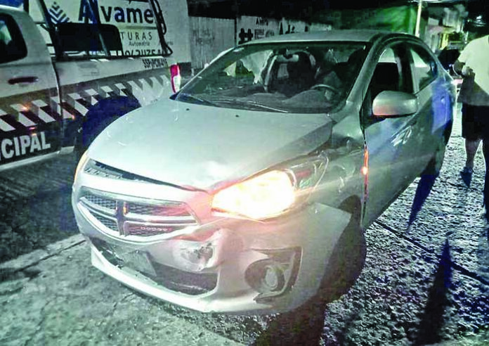 Tapachula, Chiapas; 14 de agosto.- Fuerte accidente se registró a las 06:00 de la mañana, en la 9ª sur y 16ª oriente, de la colonia 16 de Septiembre; el perito de Tránsito del Estado dio a conocer que se involucró un particular con placas de circulación de otro estado y un taxi.