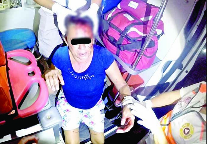 Paramédicos dieron a conocer que tiene una herida en la cabeza por su esposo Abel “N”, con quién momentos antes estuvo ingiriendo bebidas alcohólicas, añadió que empezaron a discutir y él le dio con el machete en la cabeza. El agresor huyó y la víctima fue llevada al IMSS. EL ORBE / Roberto Corado Mosqueda