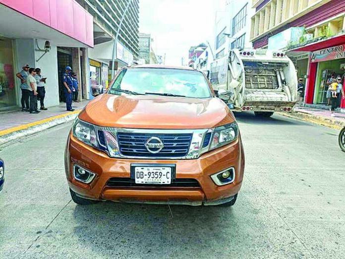 Ella transitaba de poniente a oriente, sobre la avenida central poniente y al llegar al lugar en mención, se impactó por alcance en la parte trasera de una camioneta Nissan NP-300 de color naranja y conducida por Edward Leonel “N”.