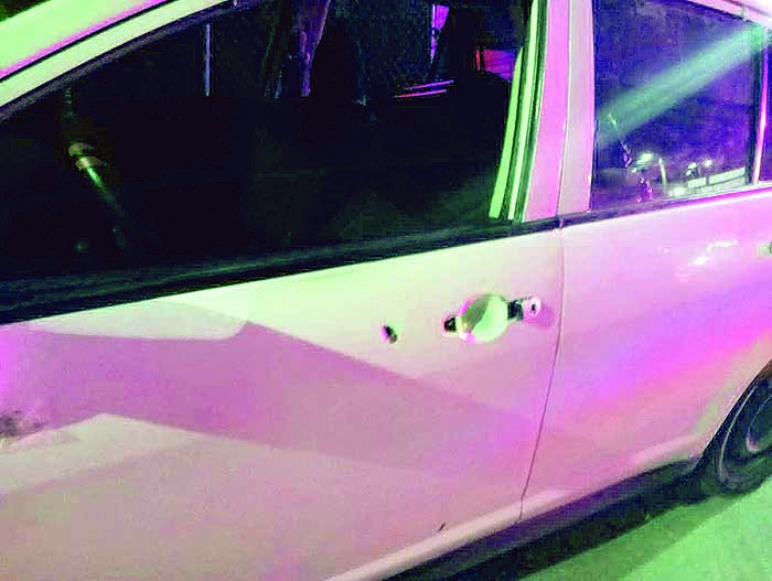 Los uniformados tuvieron a la vista un Nissan Tiida con placas de circulación del estado y presenta un impacto al parecer calibre 9mm, a la altura de la puerta del conductor. Este vehículo está en calidad de abandonado; en el interior no encontraron rastro de sangre o algún tipo de arma. Fue puesto a disposición del Ministerio Público del Fuero Común, por algún hecho delictivo en el cual pudo haberse inmiscuido. EL ORBE / Roberto Corado Mosqueda
